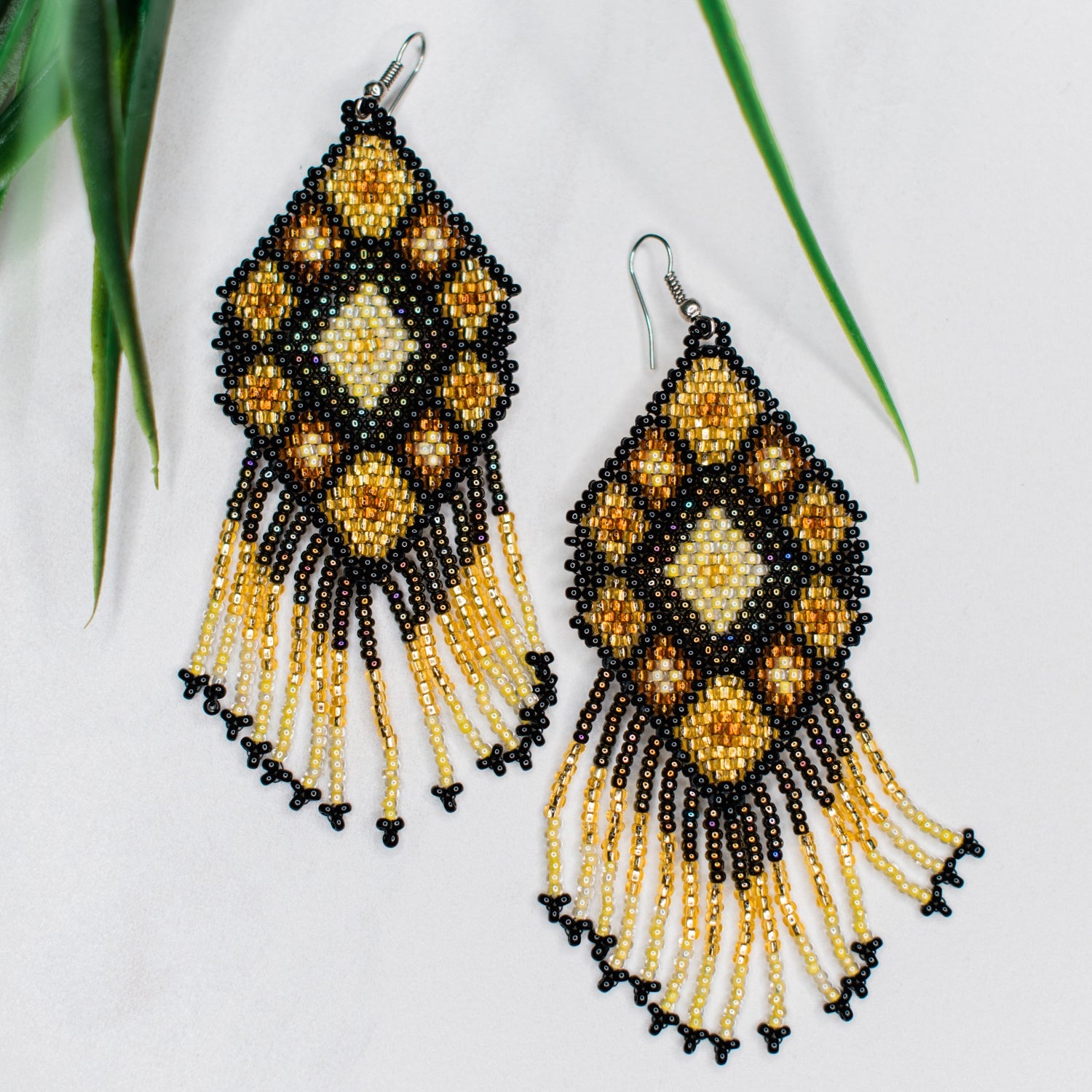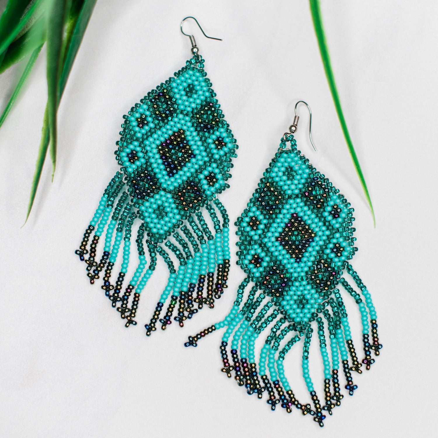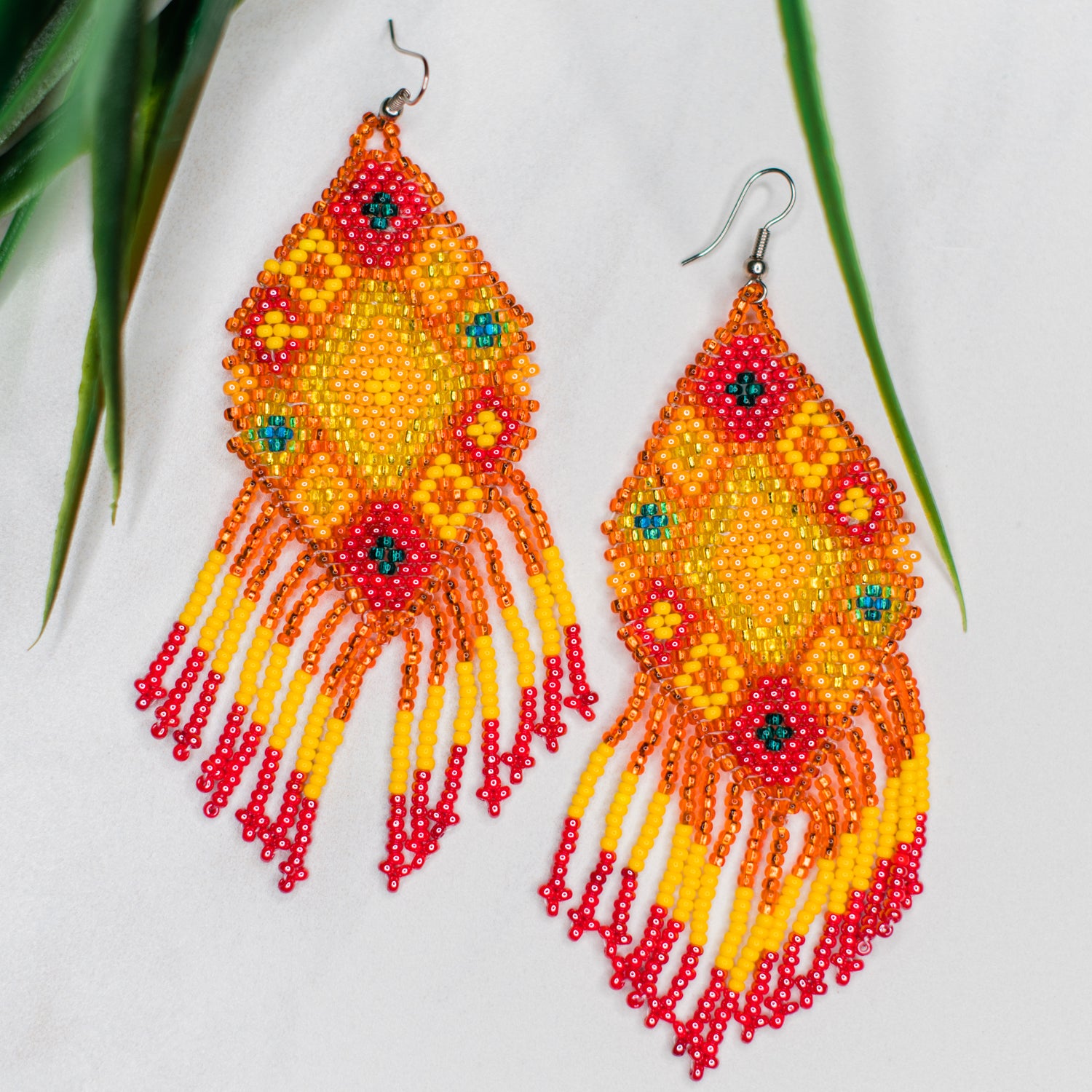 Make a statement with these beautiful earrings! These fair trade beaded Kite Earrings are made from glass seed beads and woven into fun patterns. They measure 1.5 w x 3.5 l and come in assorted colors. Each purchase empowers Guatemalan artisans.