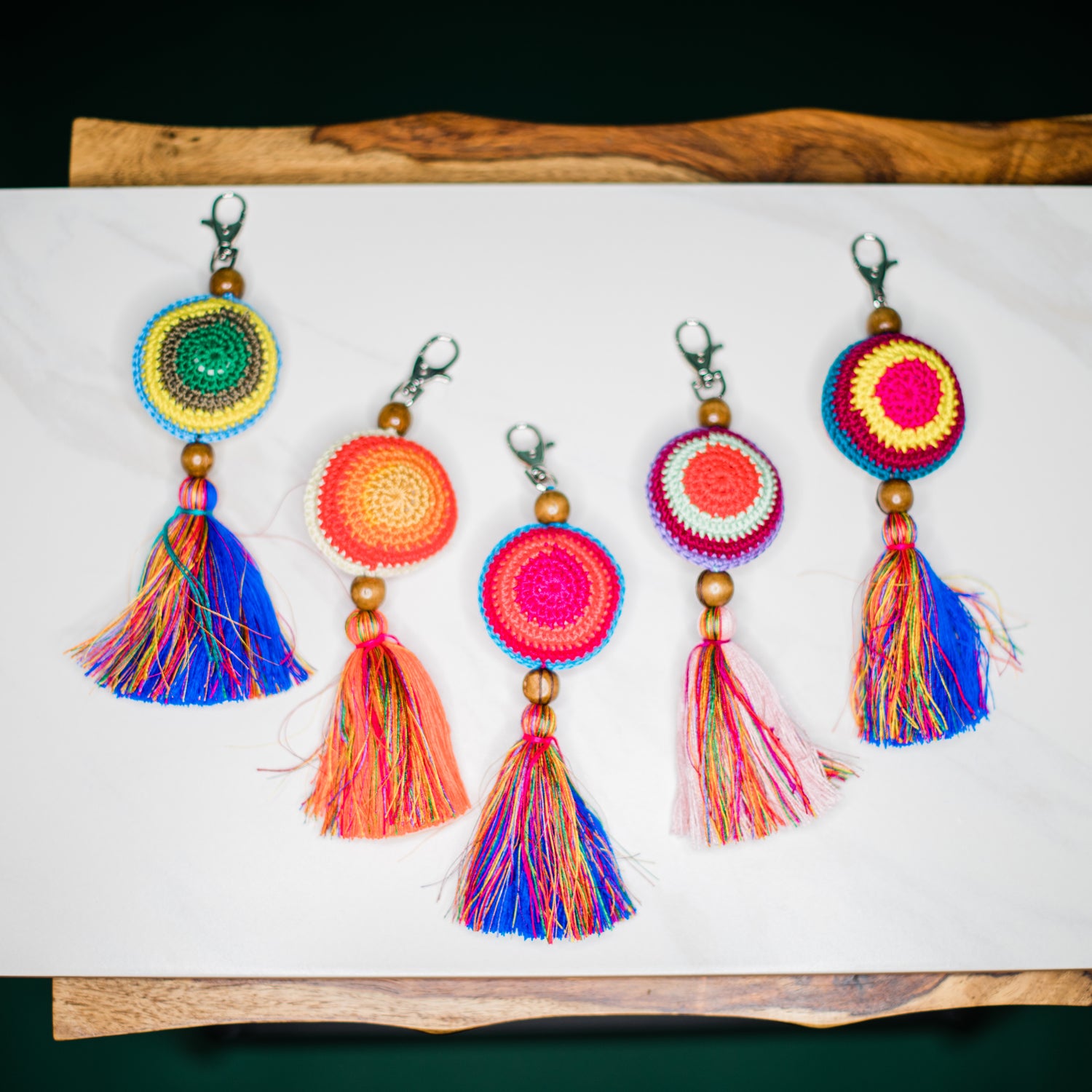 Add a statement piece to your favorite purse with this Crochet Zipper Pull. Even wear it as a key chain on your keys and backpack!