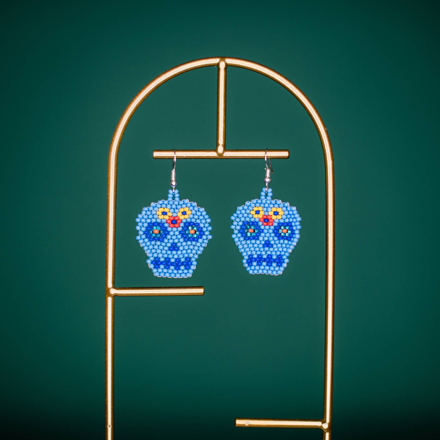 These fun hand-beaded Sugar Skull will sure be a hit in your Day of the Dead Collection. Hand-made in Guatemala! Sugar skull measures 1 1/8 total hanging from ear wire.