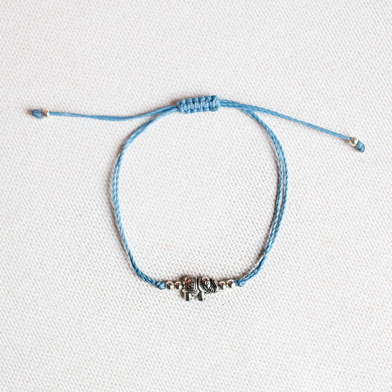 This fair trade Small Elephant String Bracelet is made from colorful string with silver metallic elephant bead at the center. Each bracelet features a pull string slip knot closure to make them easy to wear. Stack them or wear it separately. Comes in assorted colors.Each purchase empowers Guatemalan artisans.