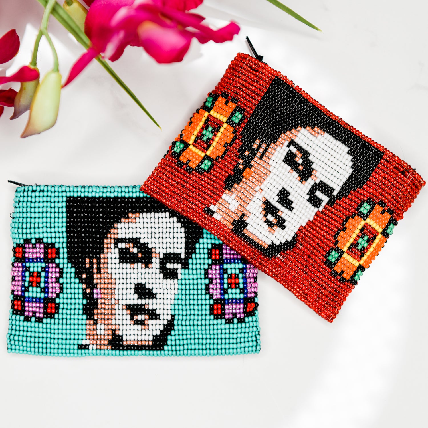 Celebrate art and culture with our Frida Kahlo Beaded Coin Bag. Handcrafted with intricate beads on both sides, this unique accessory features a vibrant portrait of Frida’s face surrounded by beautiful flowers. Perfect for carrying small essentials, it’s a bold and colorful tribute to one of the world’s most iconic artists. A must-have for any Frida fan, this coin bag blends creativity and functionality in one stunning design!