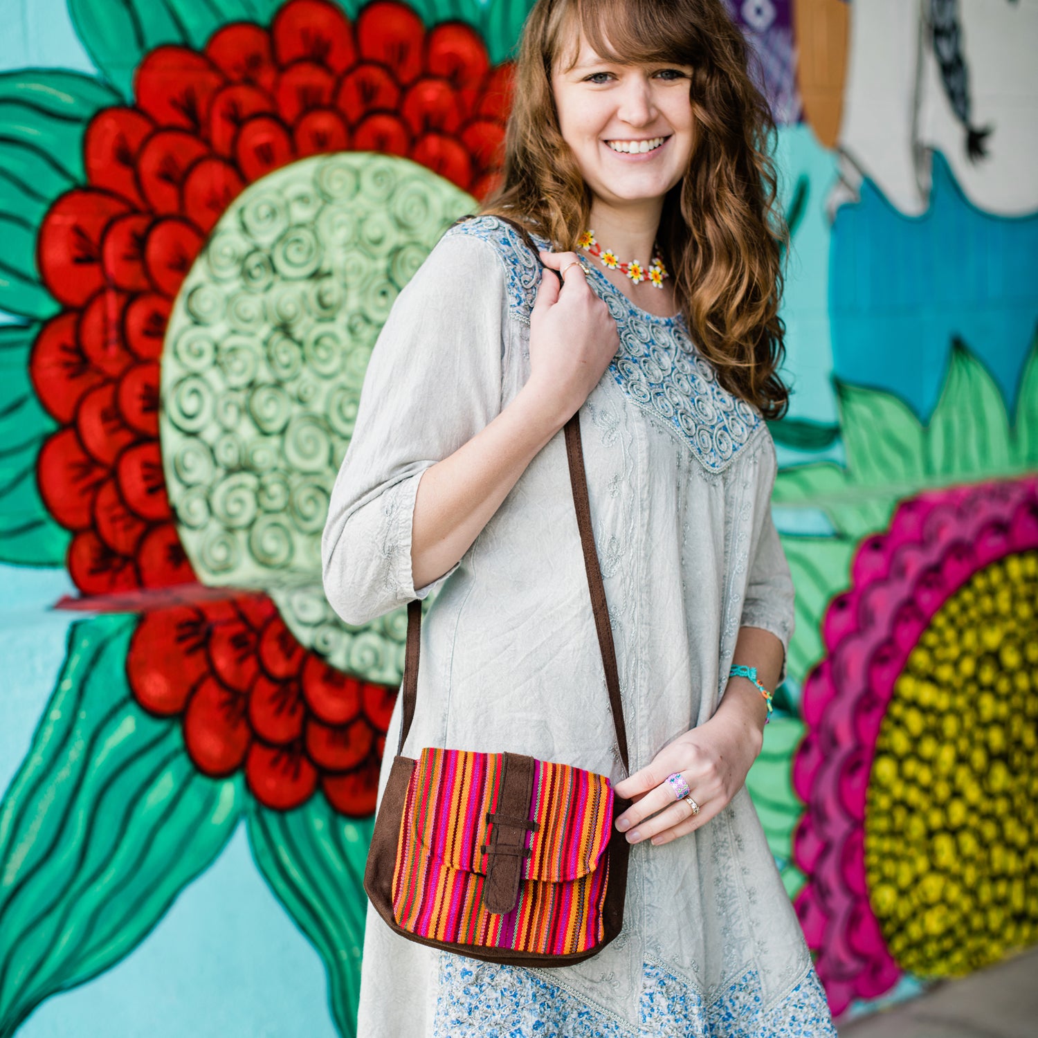 Everybody needs a go-to crossbody and the Hannah is it! This suede bag has a front opening with an inside pocket. Front patterned design comes in assorted colors with belted design, closed with magnetic clasp.