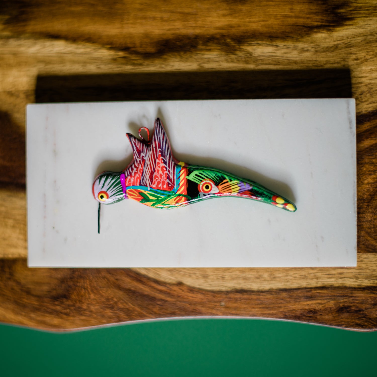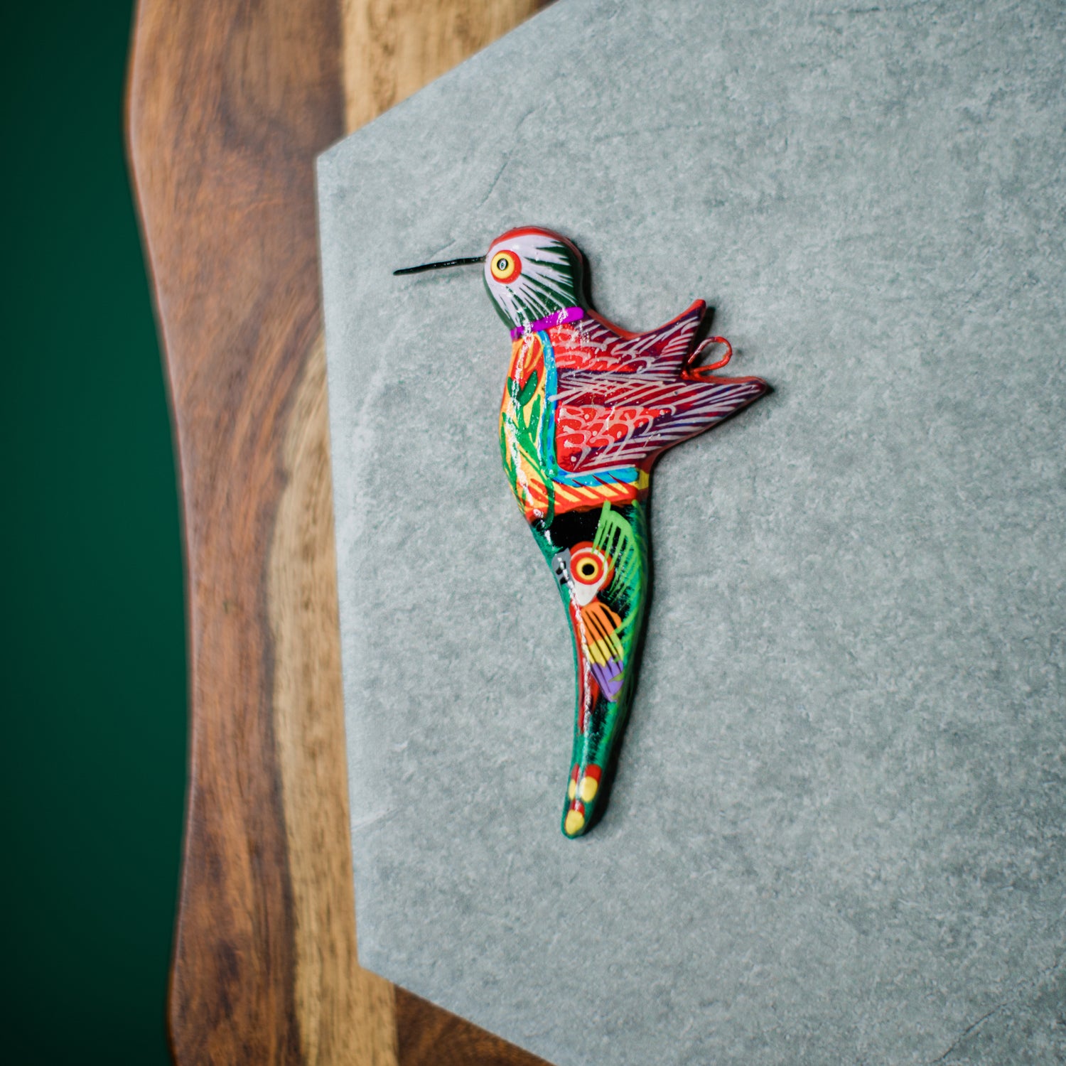 This chipper hummingbird ornament is hand painted with unique bright designs. Whether you hang it in a your tree or in a window, this piece is sure to bring joy to that special someone!