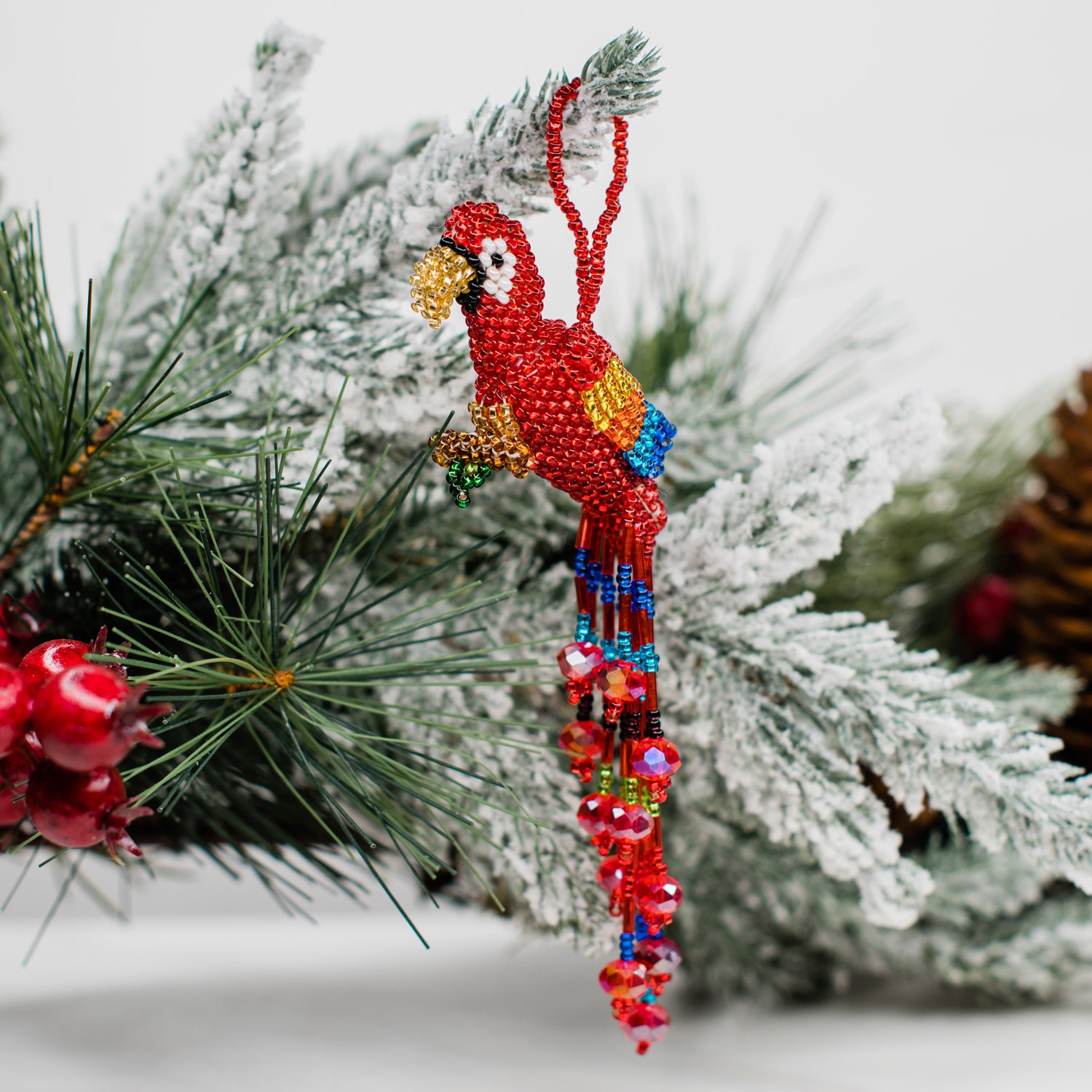 The best selling Hummingbird ornament needed a bird friend! Inspired from the jungle, this parrot ornament will add a tropical look to any tree. Hand beaded parrot comes in an assortment of colors, perfect for your car, window sill, and tree! They are great gifts for the holiday season/ Christmas!