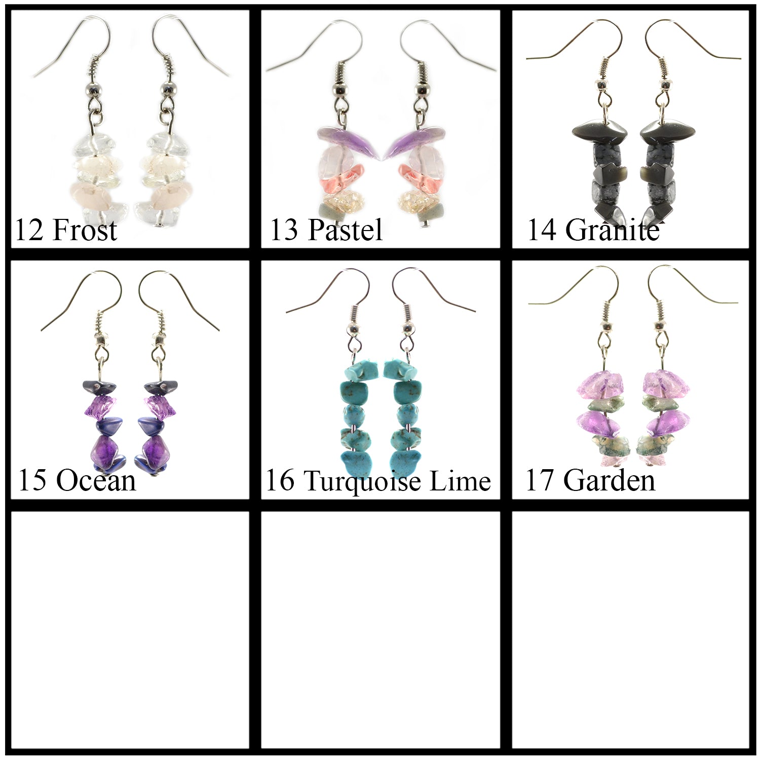 Our fair trade Rock Candy Earring features stacked chipped gems in a large variety of colors. These earrings are part of our best-selling Rock Candy Collection!Order by color or an assortment.Each purchase supports Guatemalan artisans. Compliments our 12 Strand Rock Candy Magnetic Bracelet 12 Strand Rock Candy Magnetic Necklace, Long Rock Candy Necklace, Small Rock Candy Magnetic Bracelet, Feather Stone Earrings, Rock Candy Earrings, Cat's Eye Earring, Cleo Earring, and Pyramid Earring.