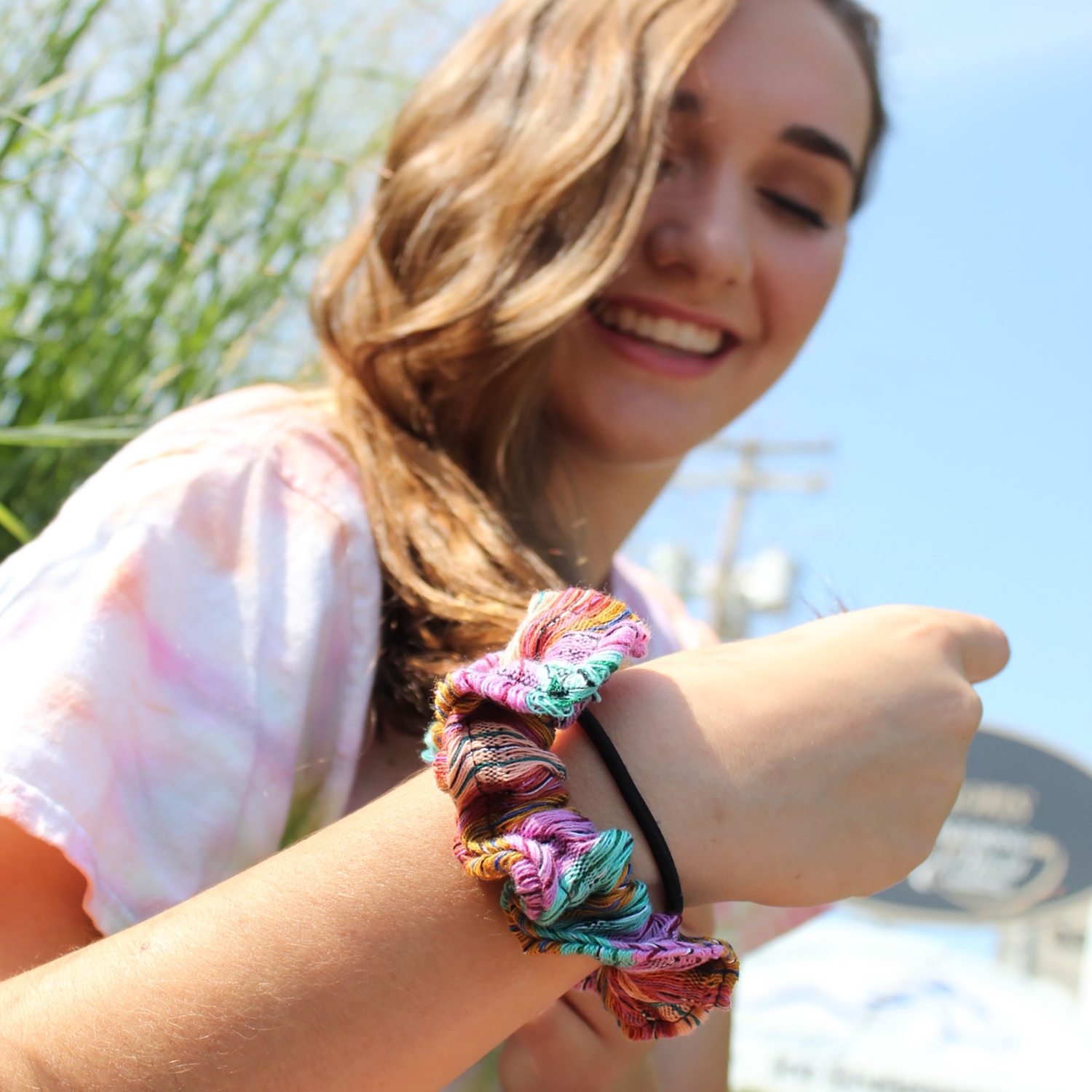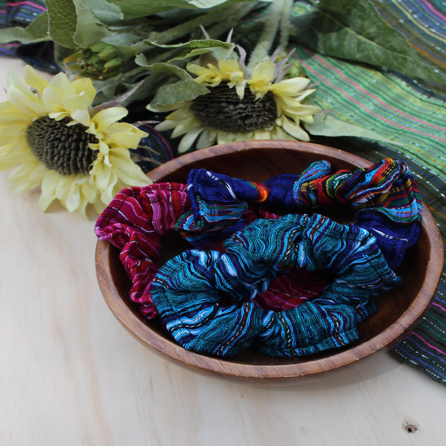 Our top-selling Guatemalan hair scrunchies are a great way to keep hair out of your face. These vibrant fair trade scrunchies are gentle on your hair but provide a secure hold. They are available in assorted colors from the same scarf fabric as our Headbands. These scrunchies are also available in rainbow. Each purchase empowers artisans in Guatemala