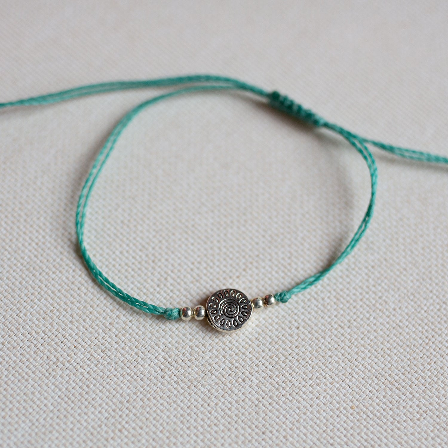 This fair trade Sun String Bracelet is made from colorful string with a silver metallic sun bead at the center. Each bracelet features a pull string slip knot closure to make them easy to wear. Stack them or wear it separately. Comes in assorted colors.Each purchase empowers Guatemalan artisans.
