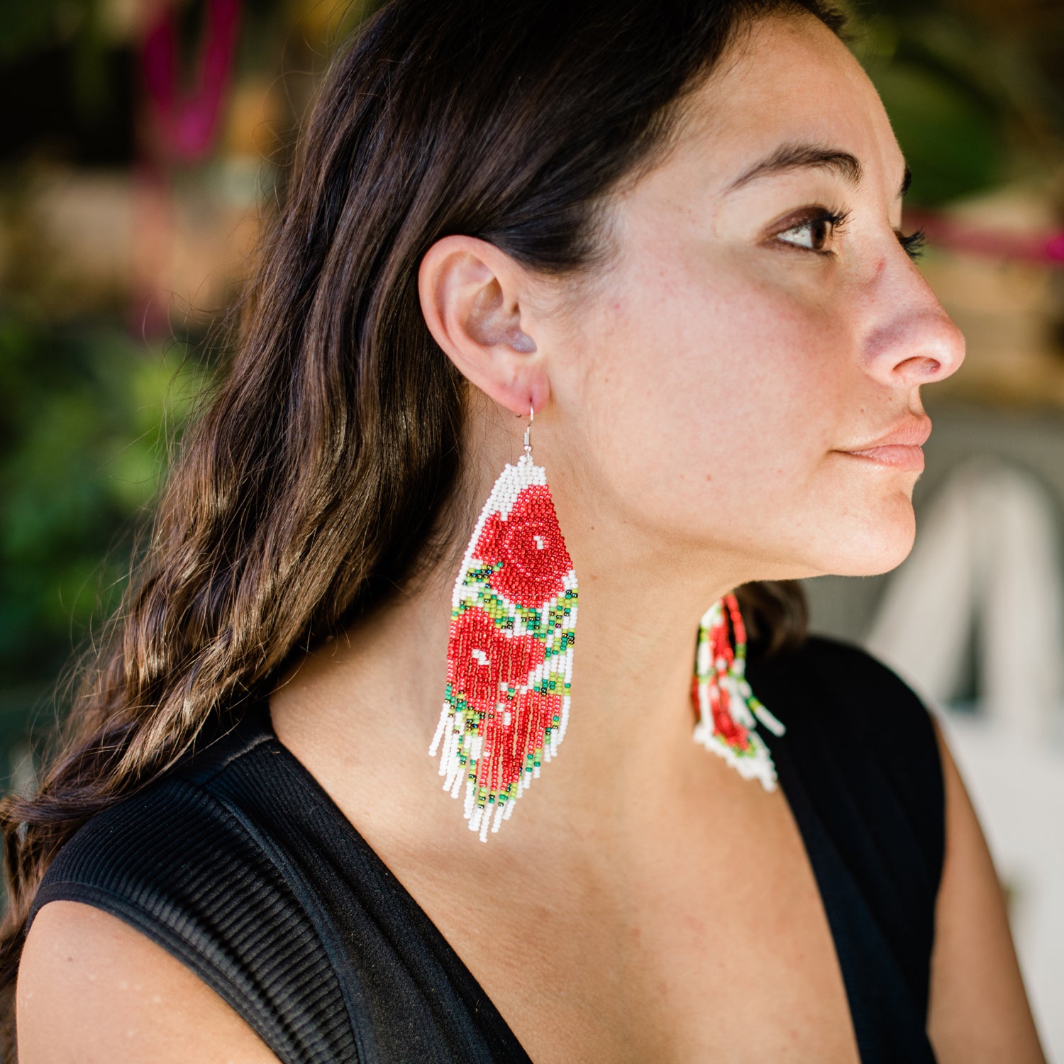 Earrings measure: 5.5 L with nickel free ear wire X 1.5 W.