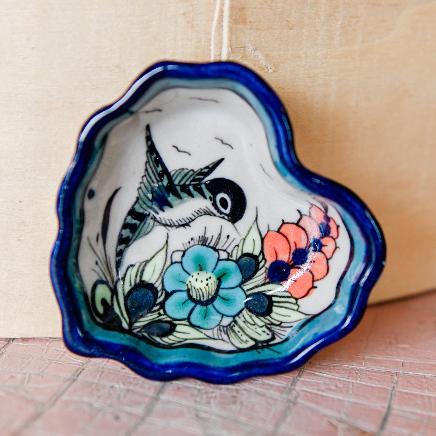 Add a splash of charm to your table with this heart-shaped mini dish, featuring our signature vibrant wild bird design. Perfect for serving tapas, holding small treats, or even organizing jewelry, each piece brings a playful yet elegant touch to your home.