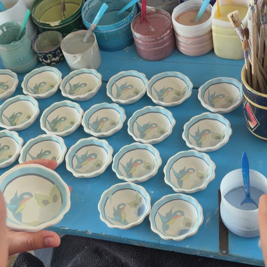 This beautiful wild bird tapas Dish is the perfect serving bowl or jewelry tray. Handmade and painted in Guatemala using lead free paint, this dish is microwave and dishwasher safe. It features a traditional wild bird pattern and compliments our wild bird ceramic Collection. The dish measures 2 1/2 L x 2 1/2 W x 1'' H. Each purchase empowers Guatemalan artisans.
